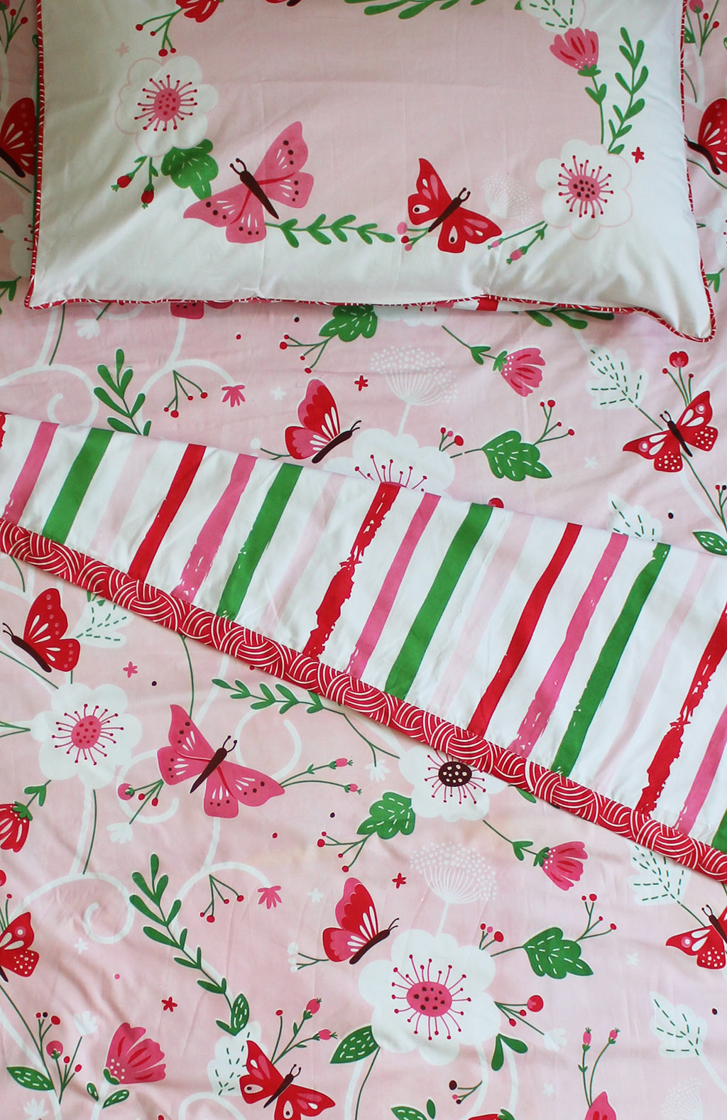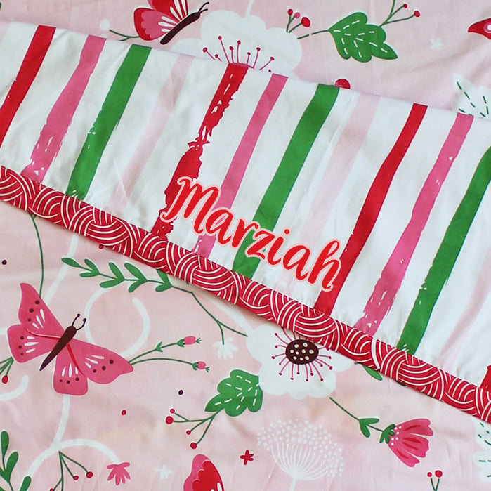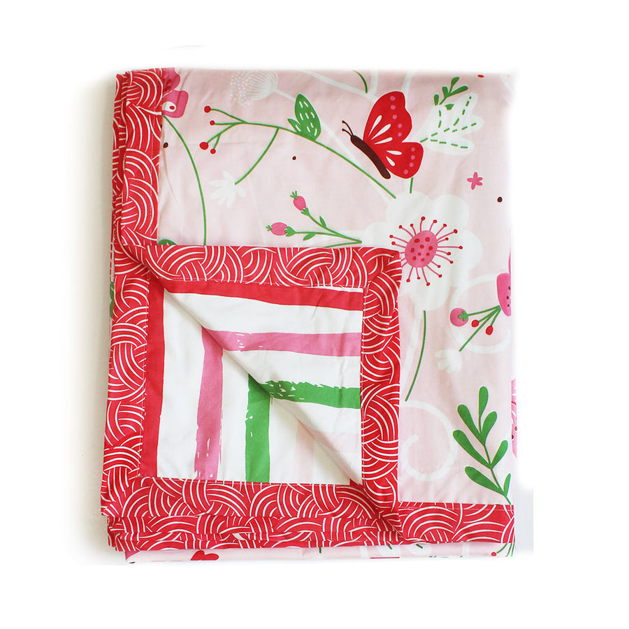 Flowers & Butterflies 100% Cotton 3 Layer Reversible Single Blanket Dohar for Boys & Girls (Can be Personalised)