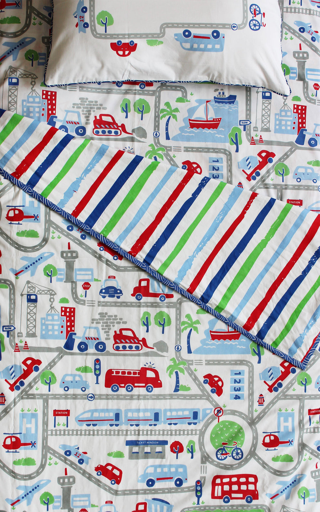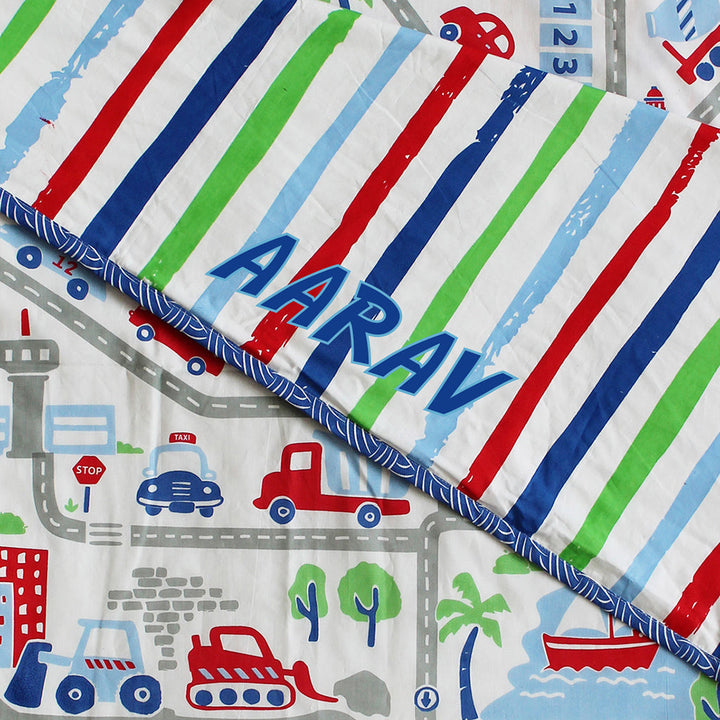 Busy Street 100% Cotton 3 Layer Reversible Single Blanket Dohar for Boys & Girls (Can be Personalised)