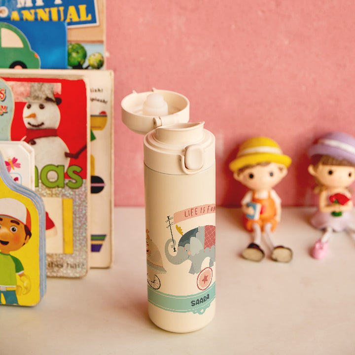 Our personalized insulted bottle is loaded with kid-friendly features, including a stainless steel construction sized for tiny hands and a lid that’s easy to open and close.