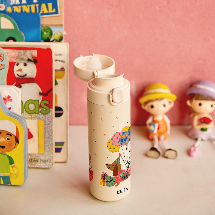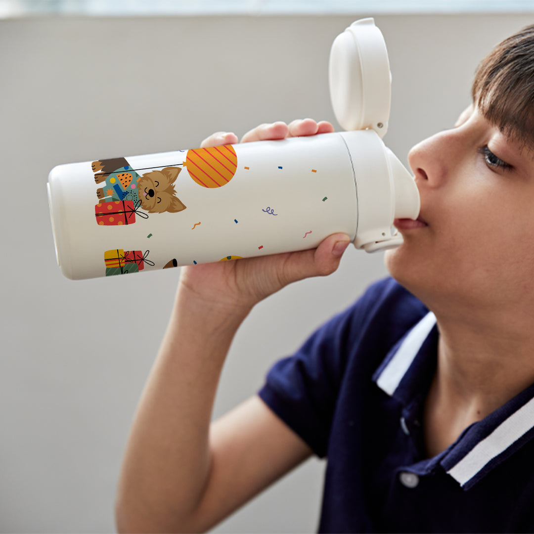 Our personalized insulted bottle is loaded with kid-friendly features, including a stainless steel construction sized for tiny hands and a lid that’s easy to open and close.