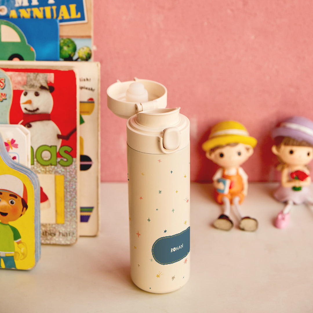Our personalized insulted bottle is loaded with kid-friendly features, including a stainless steel construction sized for tiny hands and a lid that’s easy to open and close.