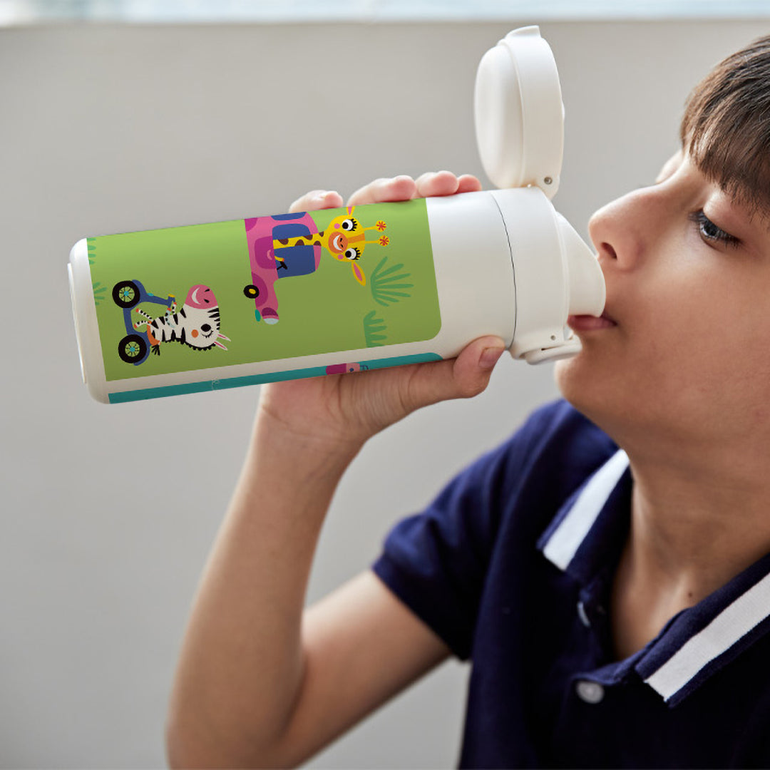 Our personalized insulted bottle is loaded with kid-friendly features, including a stainless steel construction sized for tiny hands and a lid that’s easy to open and close.