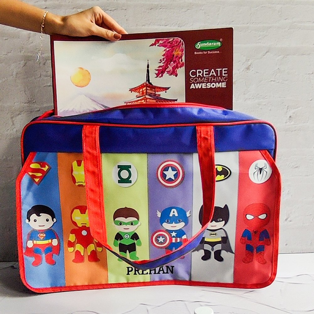 Brush up your kid’s art skills with these jumbo art bags. It can fit in a3 size art bags and small tables too. Use the front flap to keep colours, brushes, art books, etc. These bags are waterproof.