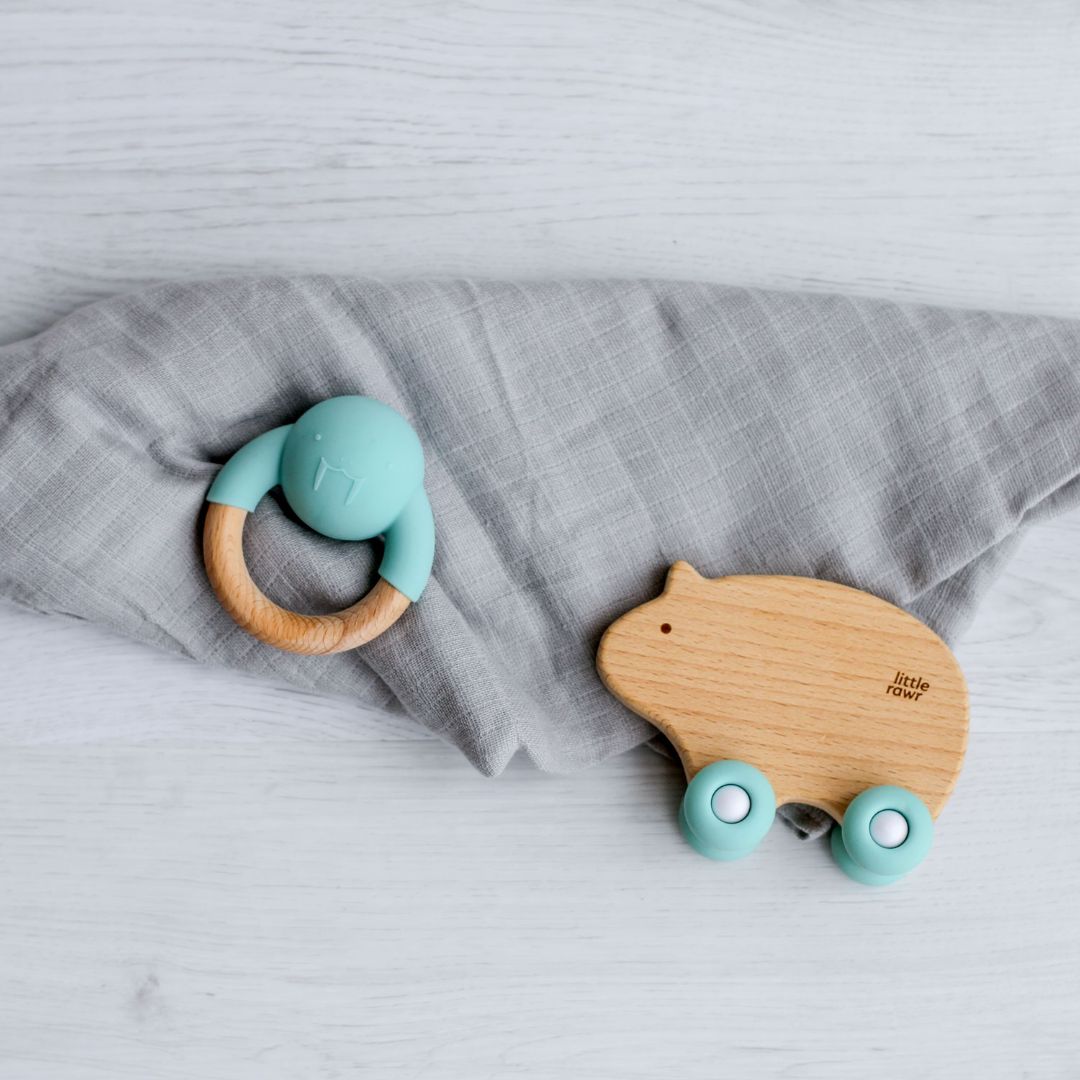 Little Rawr's unique and functional design of the toys makes them more stylish and fits perfectly in the hands of your kids. Animal wheely toys come in different shapes- bear, kitty, lion, walrus, and rabbit to build your child's imagination and fine motor skills by promoting their physical and intellectual development. Our lightweight, reusable wood toys for babies are made from high-grade oak wood and silicone that is free from PVC, BPA, and Phthalate; certified with ASTM, CFU, and EU standards. Maintenance has been much simpler, as the wheel toys are cleaned with soapy water or wet wipes.