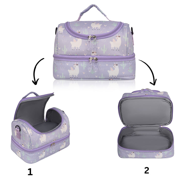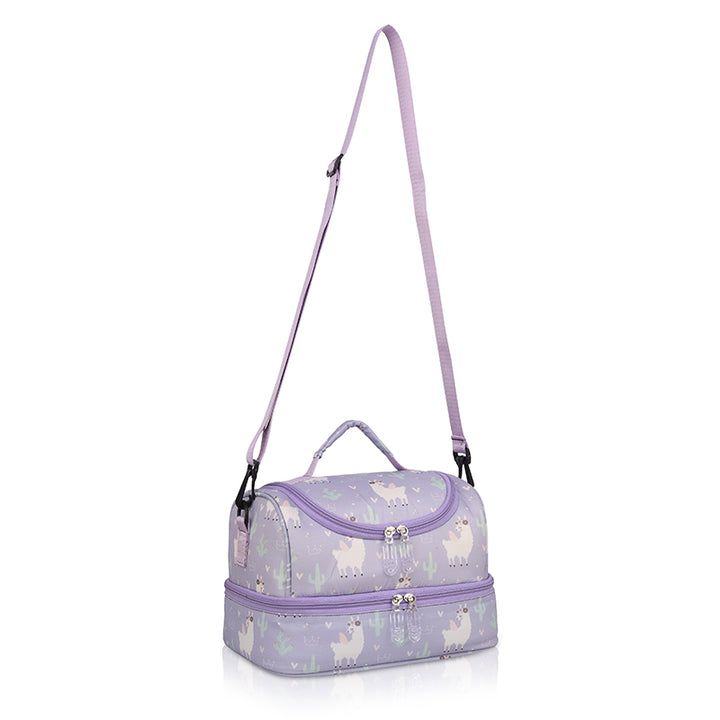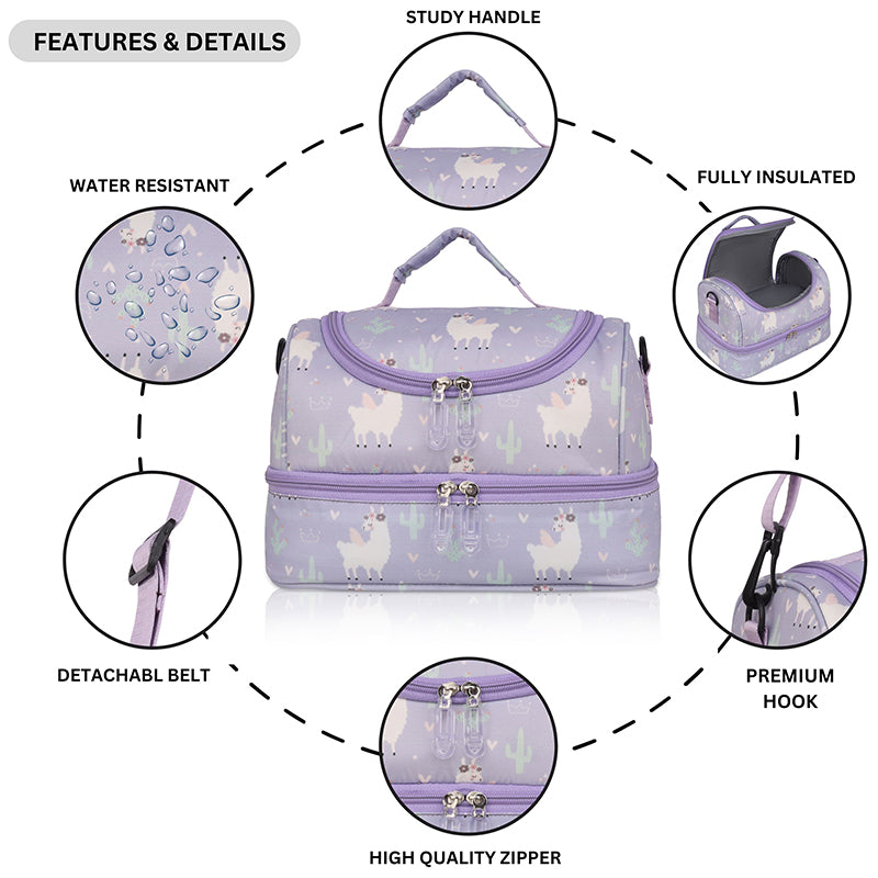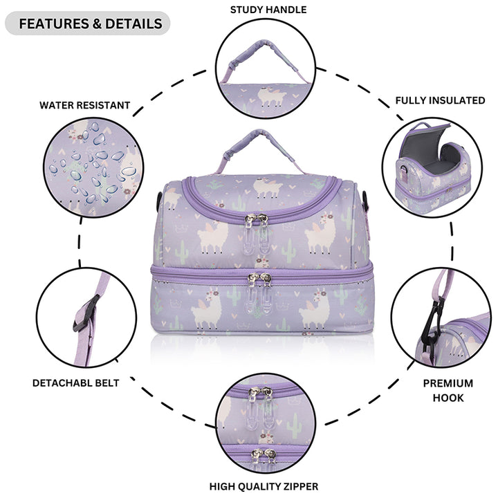 It keeps the food warm or cool,due to its INSULATED INTERIOR. It has a detachable belt that can be adjusted as per the kids height and a Convenient Handle too.