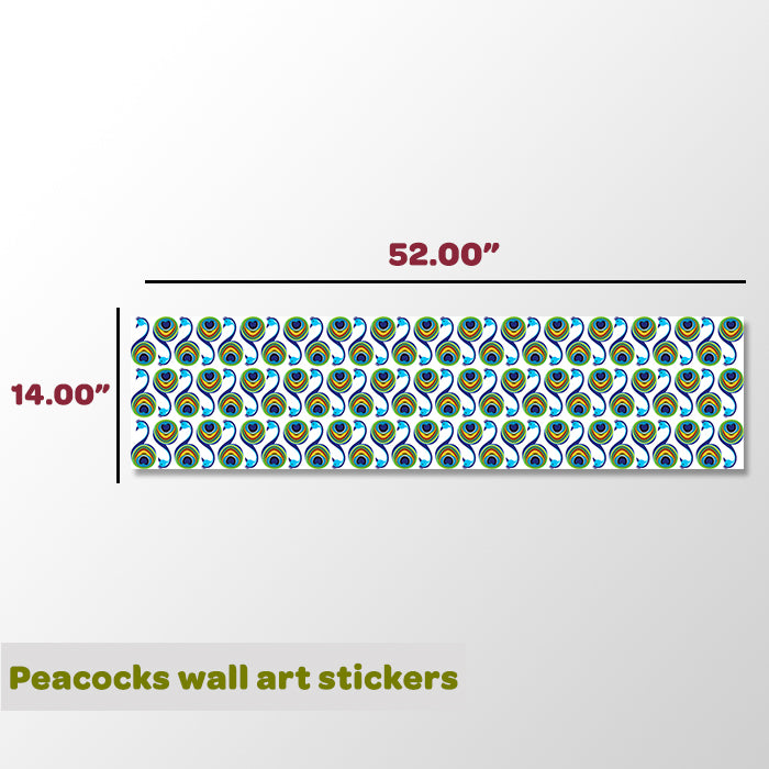 This set of mini wall art stickers for Living Room comes in a single sheet. The approximate size of each sheet is H x W: 14.37"" x 52"". The approximate size of the Peacocks is 4.07” x 2.15.