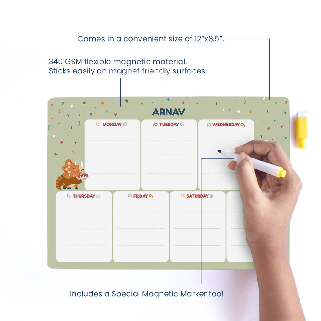 No more struggling with meal plans & fussy eaters. Create excitement in your kids by personalizing a meal planner for them! Involve them in the process with ease & create balanced weekly meals with this cutely designed personalized Meal Planner. P.S: Special Magnetic Marker included for FREE!