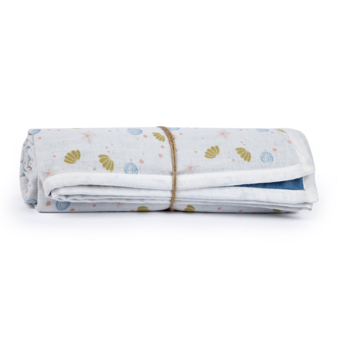 Made from 4 layers of the softest organic cotton muslin and dyed & printed with the purest plant-based natural dyes, our cuddle-worthy reversible blankets stay breathable while keeping your little one warm. Perfect for a summery afternoon, this blanket is of a slightly larger size so that your baby can grow with it.