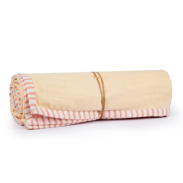 Made from 4 layers of the softest organic cotton muslin and dyed & printed with the purest plant-based natural dyes, our cuddle-worthy reversible blankets stay breathable while keeping your little one warm. Perfect for a summery afternoon, this blanket is of a slightly larger size so that your baby can grow with it.